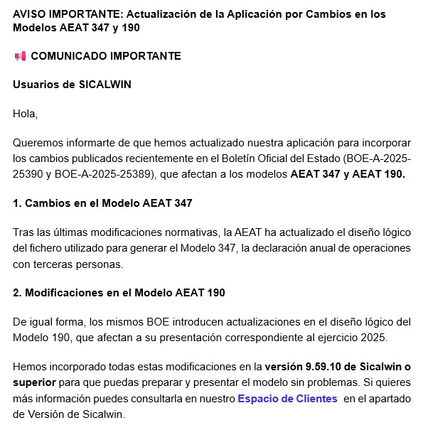 Con fecha 22/01/2026 se ha actualizado la aplicación de SICALWIN a las siguiente versión: